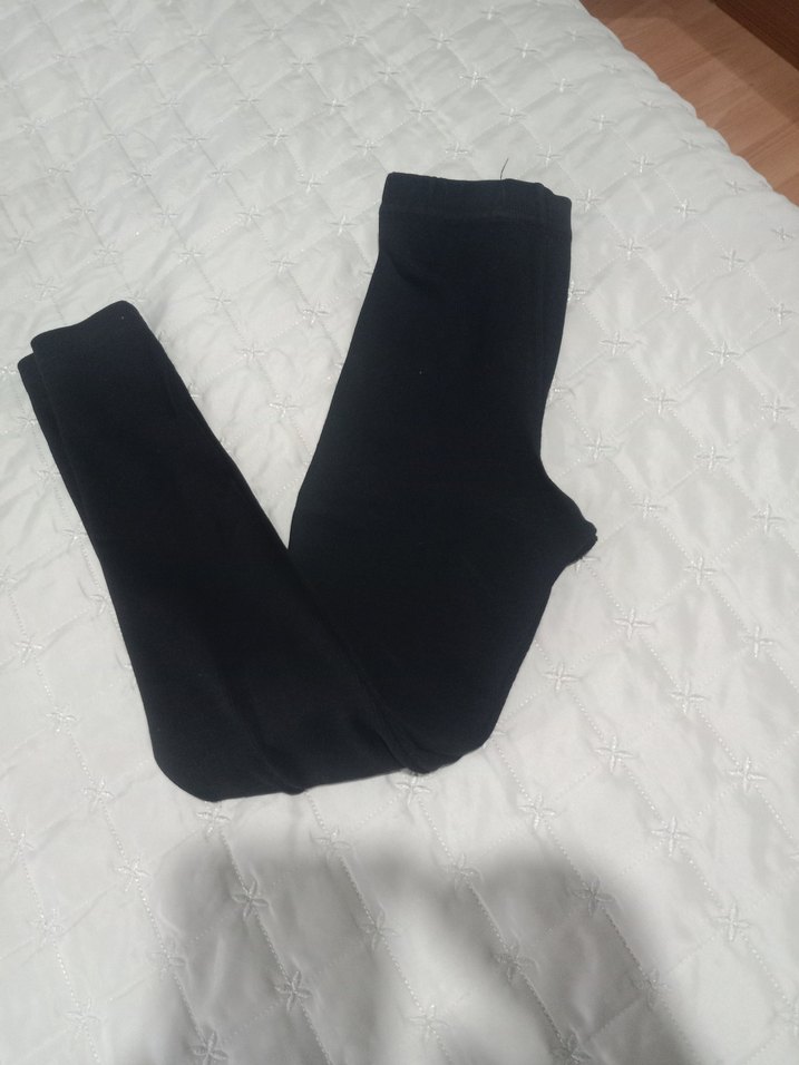 Siyah çocuk tayt, elastik bel ve rahat oturan kesime sahip. Yumuşak ve sıcak kumaştan, midi boyda, günlük kullanıma uygun sade tasarım.