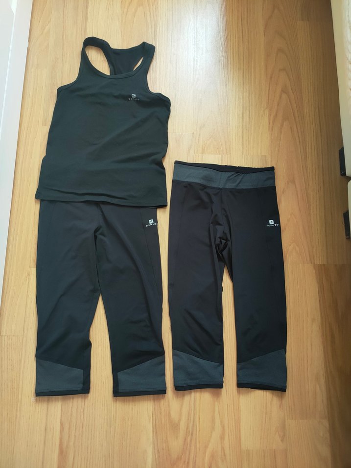 Siyah, vücuda oturan atlet ve midi boy taytlardan oluşan spor takımı. Düz, koyu renkli ve rahat sentetik kumaştan üretilmiştir. 6 7 yaş uyumlu