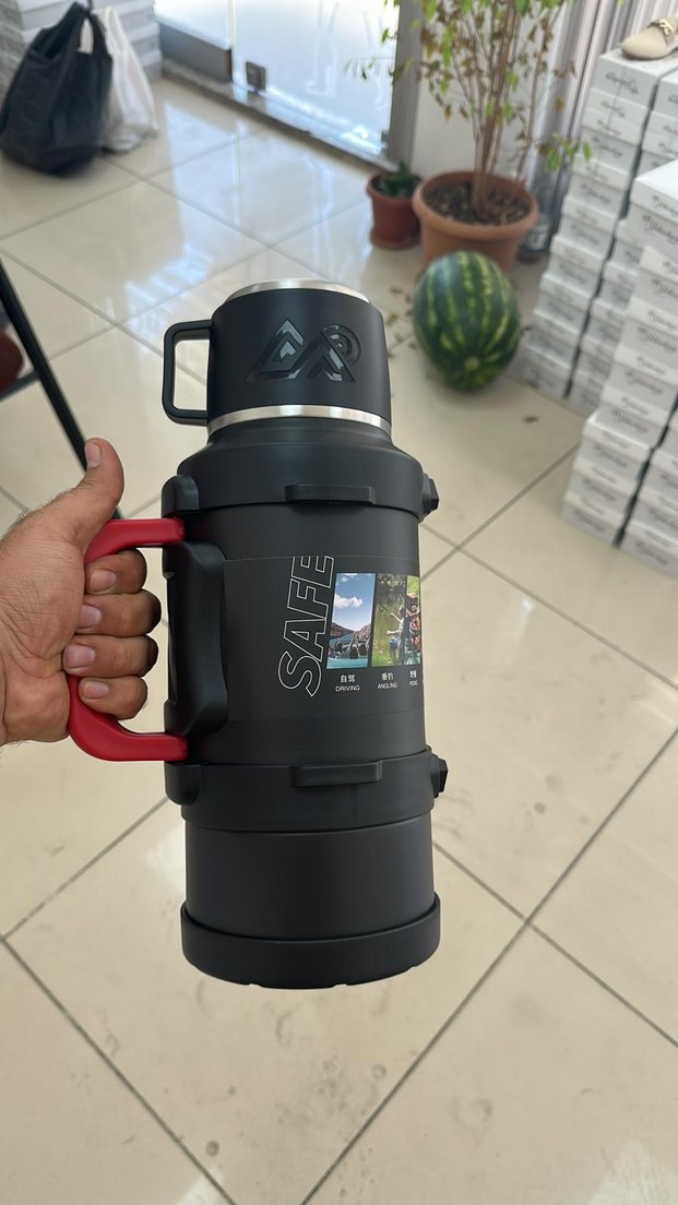 Siyah çocuk termos şişesi, sağlam kulp ve güvenli kapak ile sıcak içecekleri korur. Canlı tasarım ve kolay tutuş sağlar.
