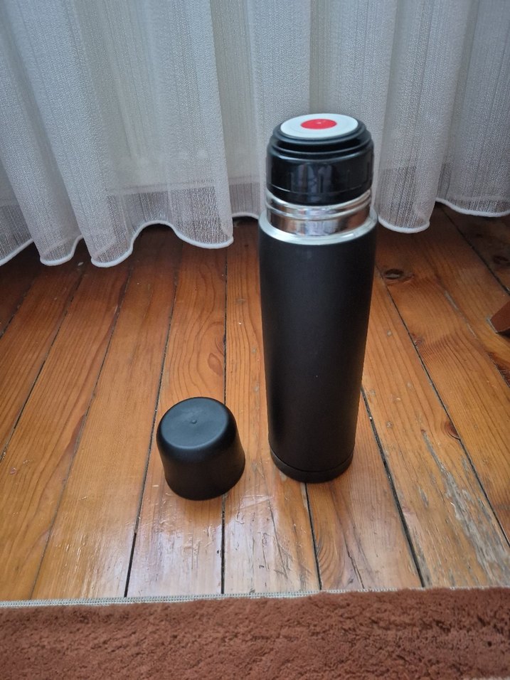 Siyah renkte, çocuklar için tasarlanmış termostur. Sıcak tutan kapaklı ve taşınması kolay ince yapıya sahiptir.
