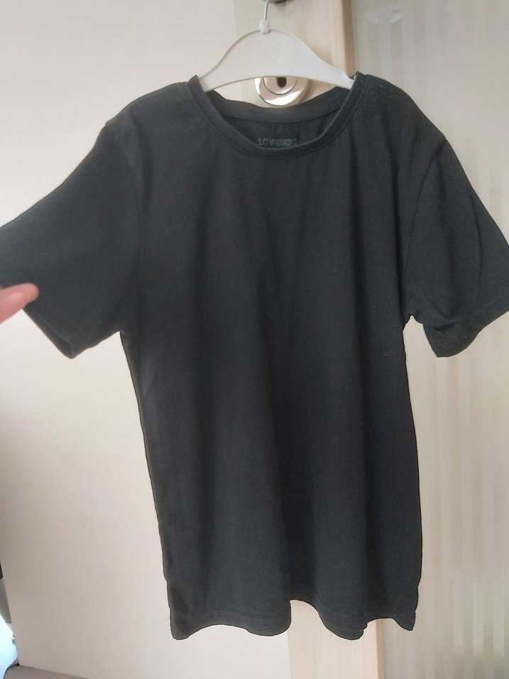 Yumuşak kumaştan yapılmış düz siyah çocuk tişörtü. Kısa kollu ve yuvarlak yakalı.
