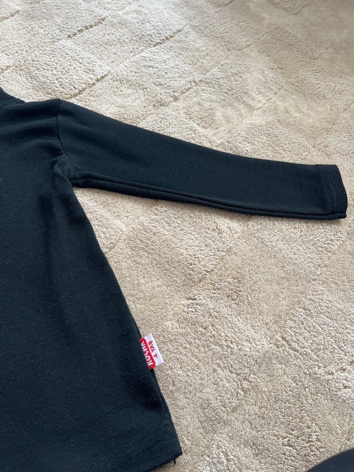 Siyah renkli, uzun kollu ve desensiz çocuk içliği, yumuşak kumaştan üretilmiştir. Katmanlama için uygundur.