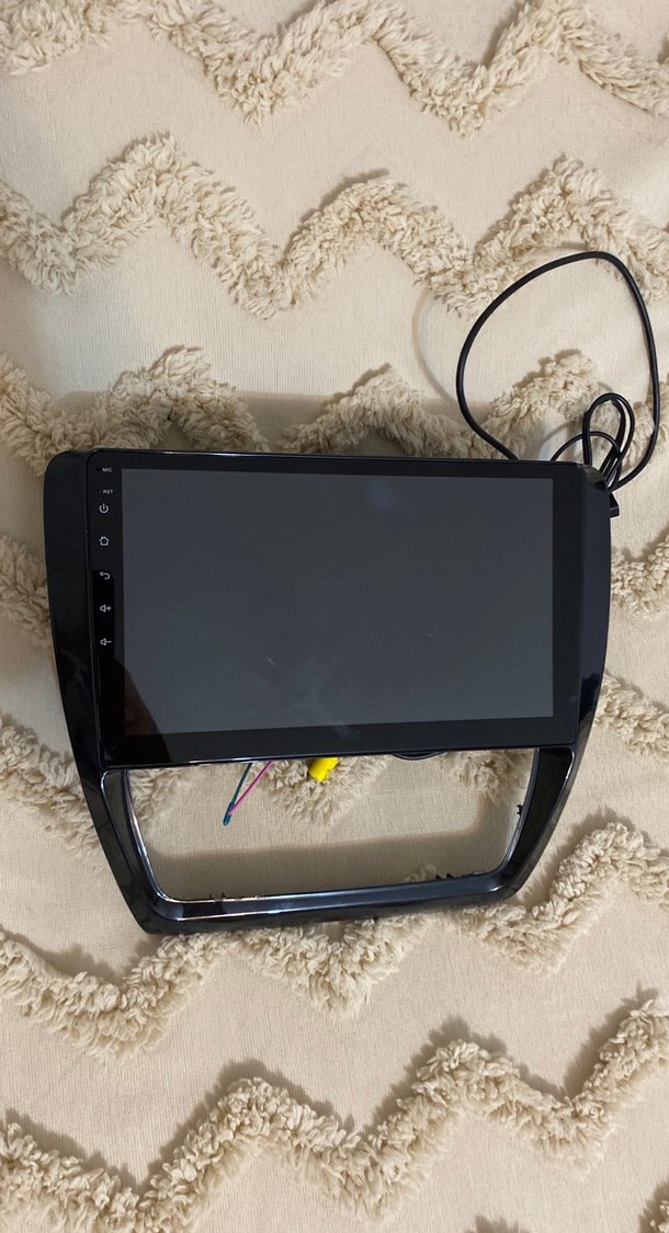 Geniş dokunmatik ekrana ve kablolu bağlantılara sahip siyah çok fonksiyonlu araç medya oynatıcı. 2013 Jetta dam söküldü uyumlu çerçevesi tak çalıştır