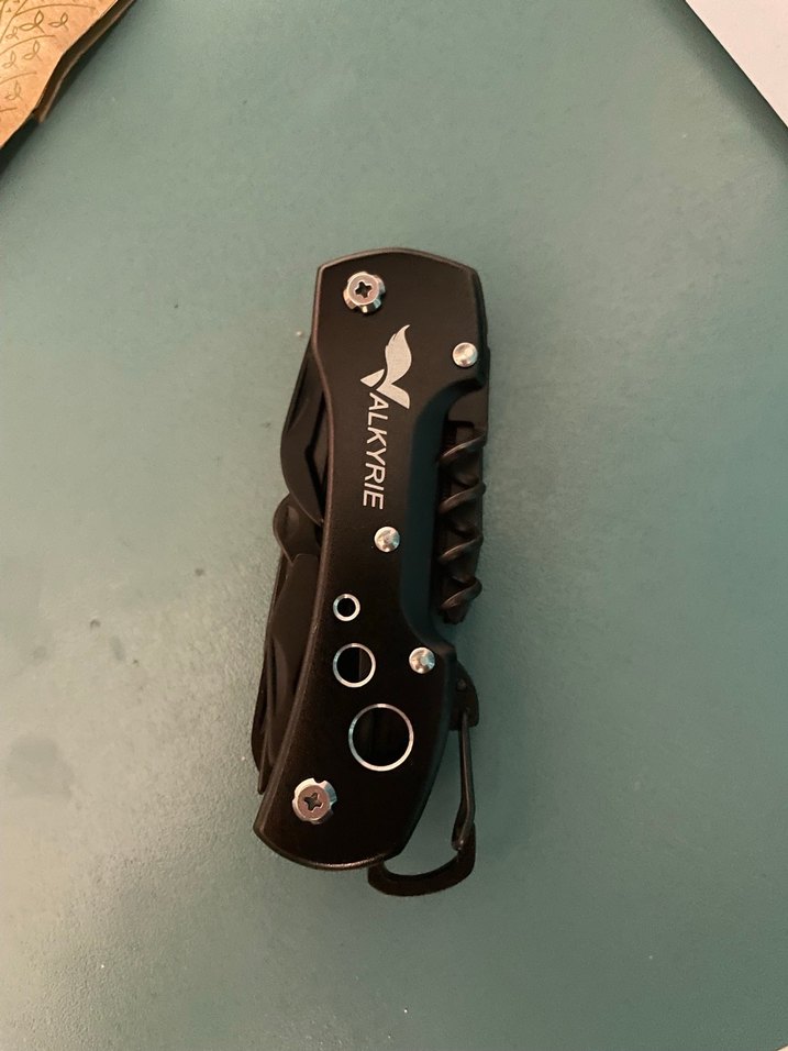 Valkyrie logosu bulunan, mantar açacağı ve klipsli siyah çok fonksiyonlu katlanabilir çakı. Kompakt ve kullanışlıdır. 12 adet bıçağı bulunmaktadır.