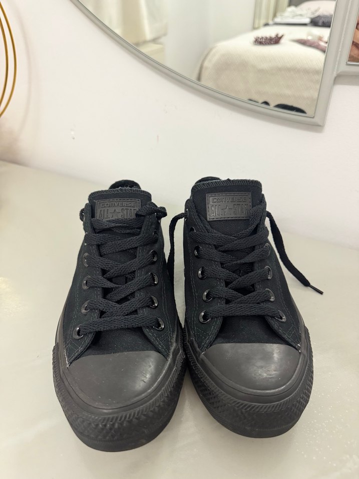 Siyah minimal tasarımlı kadın spor ayakkabısı, düz kauçuk tabanlı ve bağcıklı. Günlük sokak stili için zahmetsiz şıklık sunar. 39 numara tiz taban siyah kadın erkek farketmez ikisi içinde uygundur