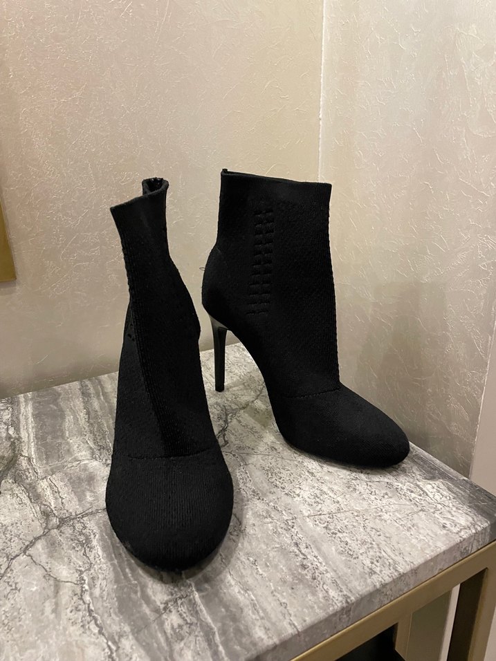 Siyah çorap Örme Topuklu Bot bootie