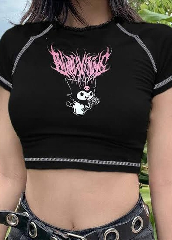 Siyah, önü baskılı crop. Beden:S marka: köstebek.