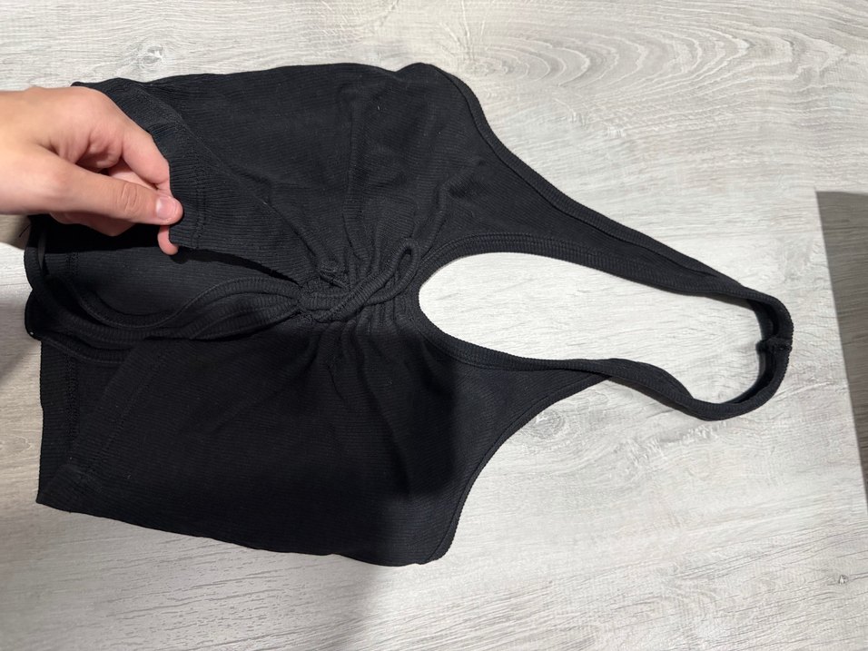 Siyah crop önden dekolte mevcuttur boyundan geçirmeli