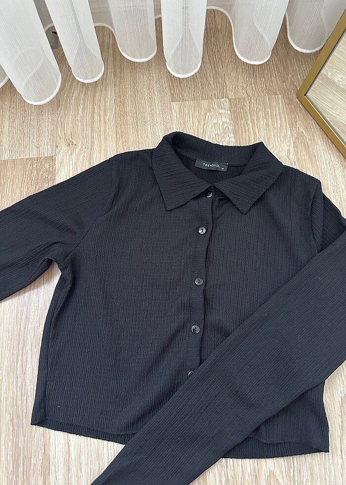 Siyah crop gömlek