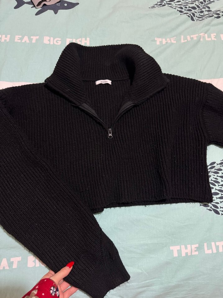 Siyah crop kazak fermuarlı