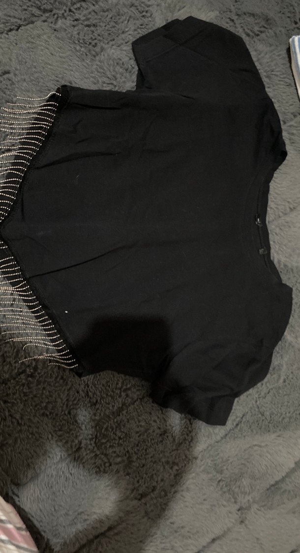 Siyah crop taşlı üst