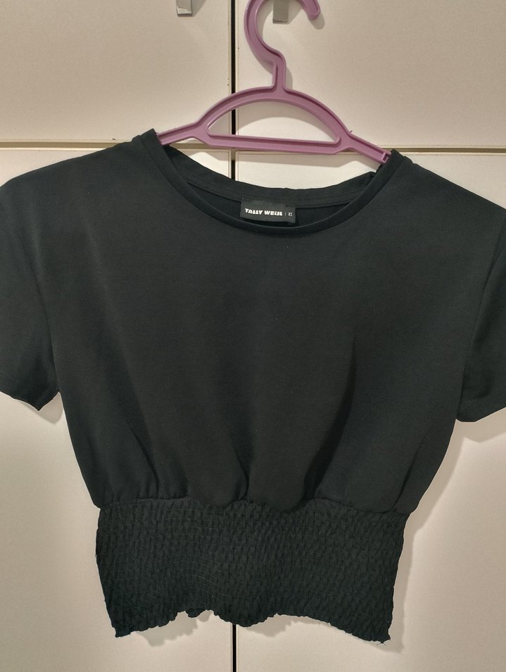 Siyah, kısa kollu, korse detaylı crop top.Bel kısmında dokulu detay bulunur. Rahat sentetik kumaştan üretilmiştir. xs,s uygun