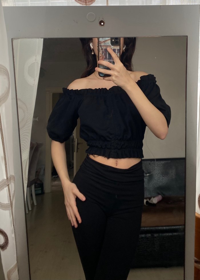 Siyah crop top omuz açık