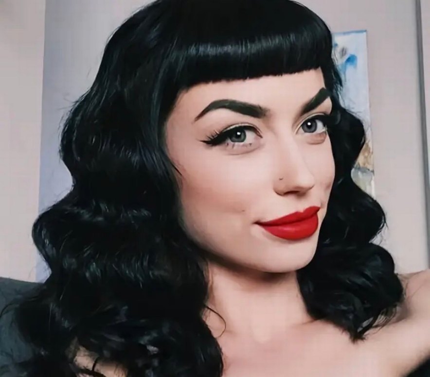 siyah dalgalı peruk, kısa kaküllü ve 22 cm baş çevresine sahiptir. 50’s ve goth kültürüne uygundur sadece denedim kullanılmadı.