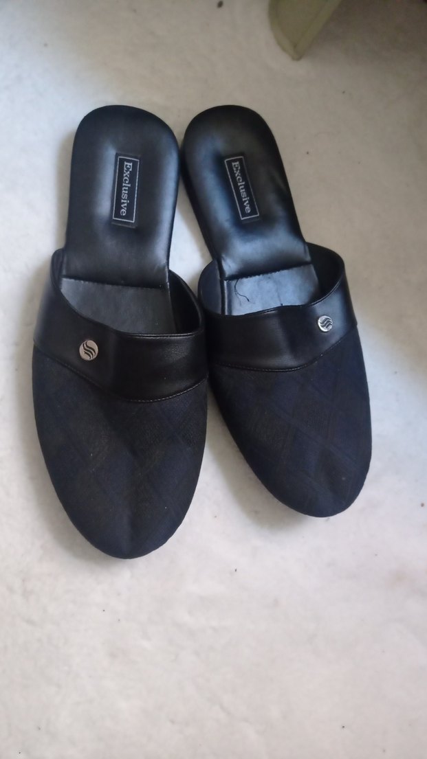 Siyah tokalı erkek terlikleri, kauçuk malzemeden. Minimalist goth tarzda, trend günlük kullanım için. damat bohçası terliği hiç kullanılmadı eşyalar arasında bekledi