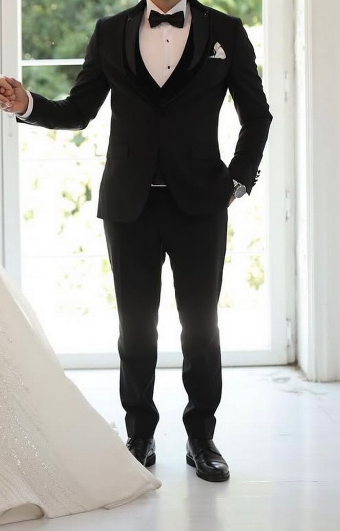 Siyah klasik kesim ve kesik yakalı damatlık ceketi, düğünde bir kez kullanıldı
