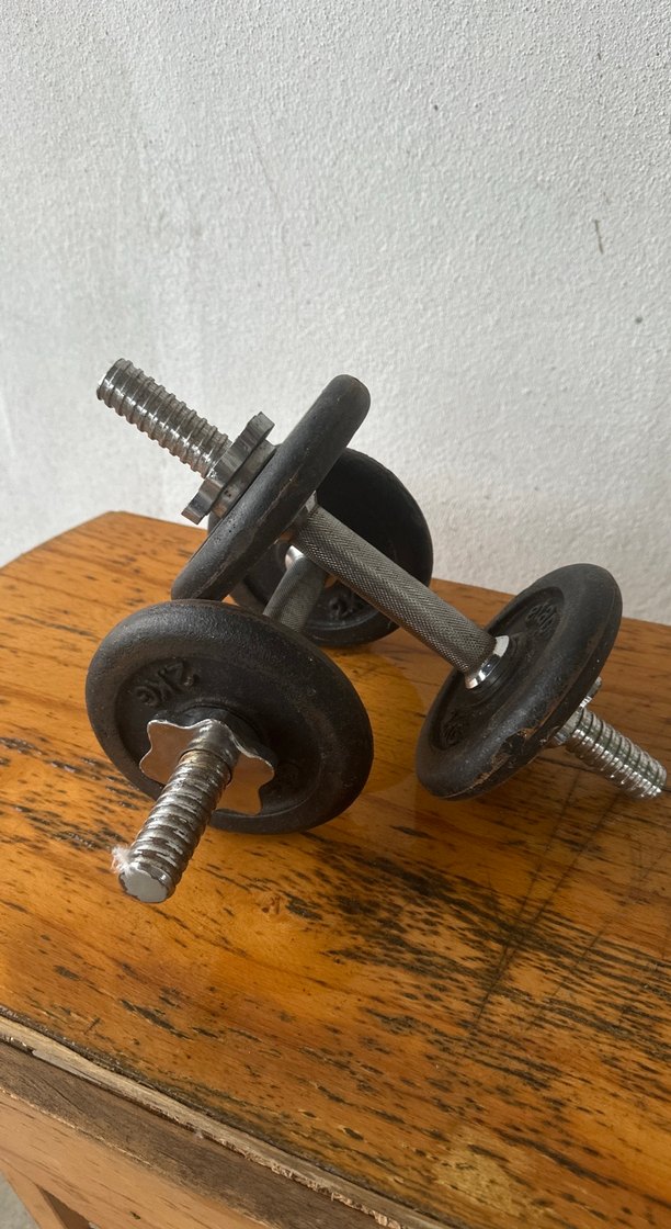 Ayarlanabilir ağırlıklı, metal saplı ve güvenli vidalı kelepçelere sahip siyah dambıl çifti. ️♂️