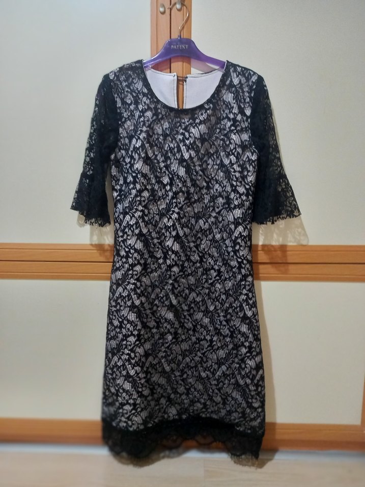 Ürün kumaş üstüne dantel kaplama kumaştan imal edilmiş olup dantel truquar kolludur. Bir gece 3- 4 saatliğine giyilmiştir. etiketi rahatsız ettiği için sökmüştüm fakat 42 beden 40 bedene de olabilir