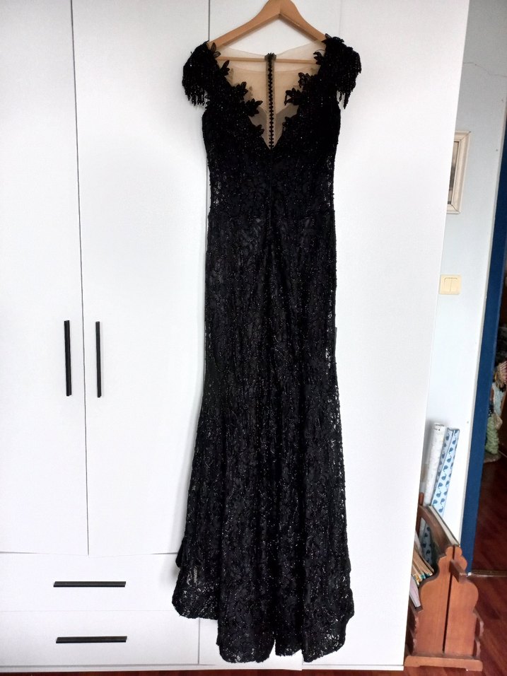 Beyliss marka siyah boncuk detaylı abiye elbise hafif kuyruklu çok şahane bir model her dönemde giyilebilecek klasik bir elbise.Gayet iyi durumda..Eni 45 cm boyu 1.52 cm gibi..Uzunlugu en kisa yeri olan öne göre ölçtüm.