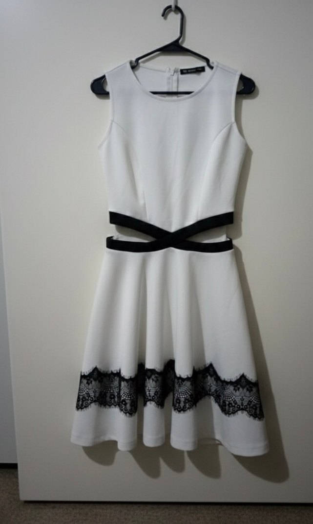 Siyah Dantel Detaylı Beyaz Midi Elbise