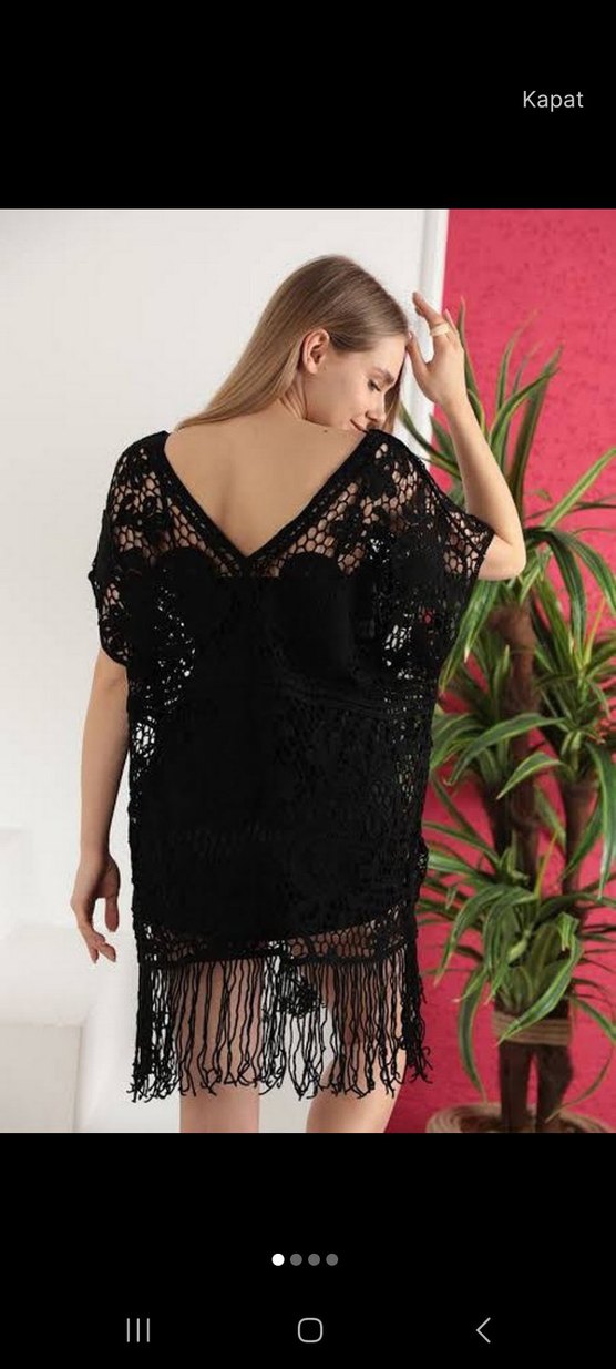 Siyah dantel detaylı, salaş kesim mini bohem pareo. Etek kısmında püsküller bulunur, günlük kullanıma uygundur. s m l beden uyumlu 1 2 defa anca kullandım