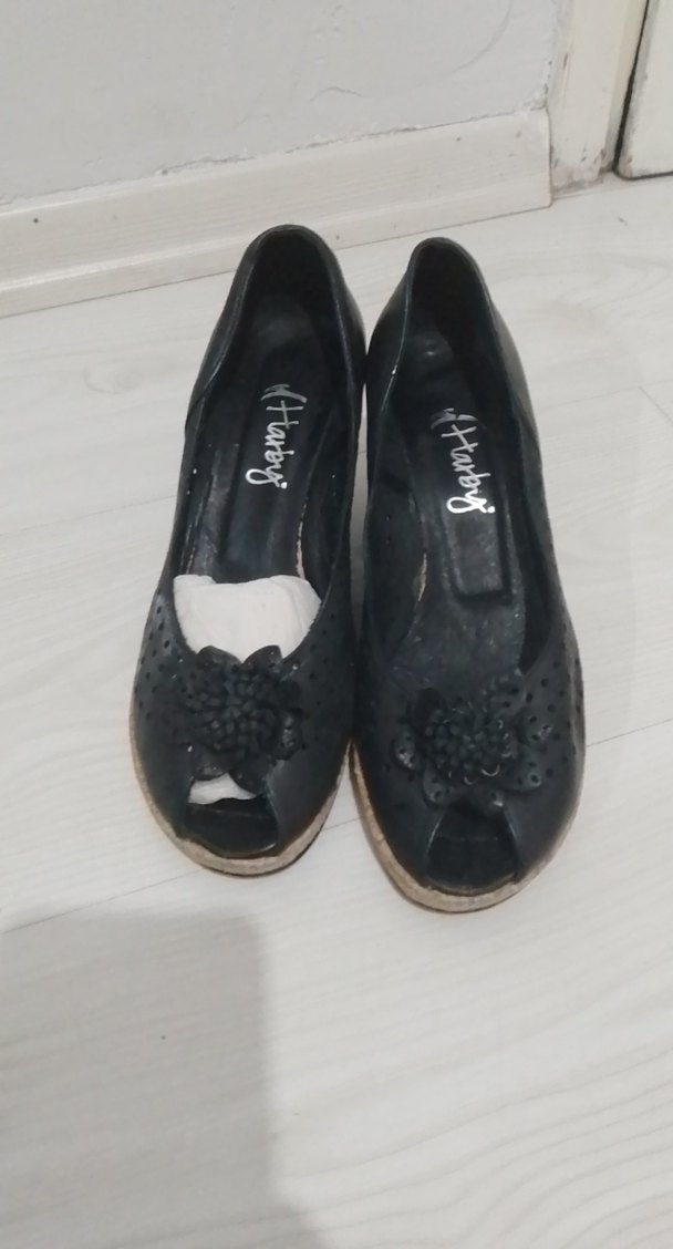 Siyah Dantel Detaylı Dolgu Topuklu Kadın Ayakkabı