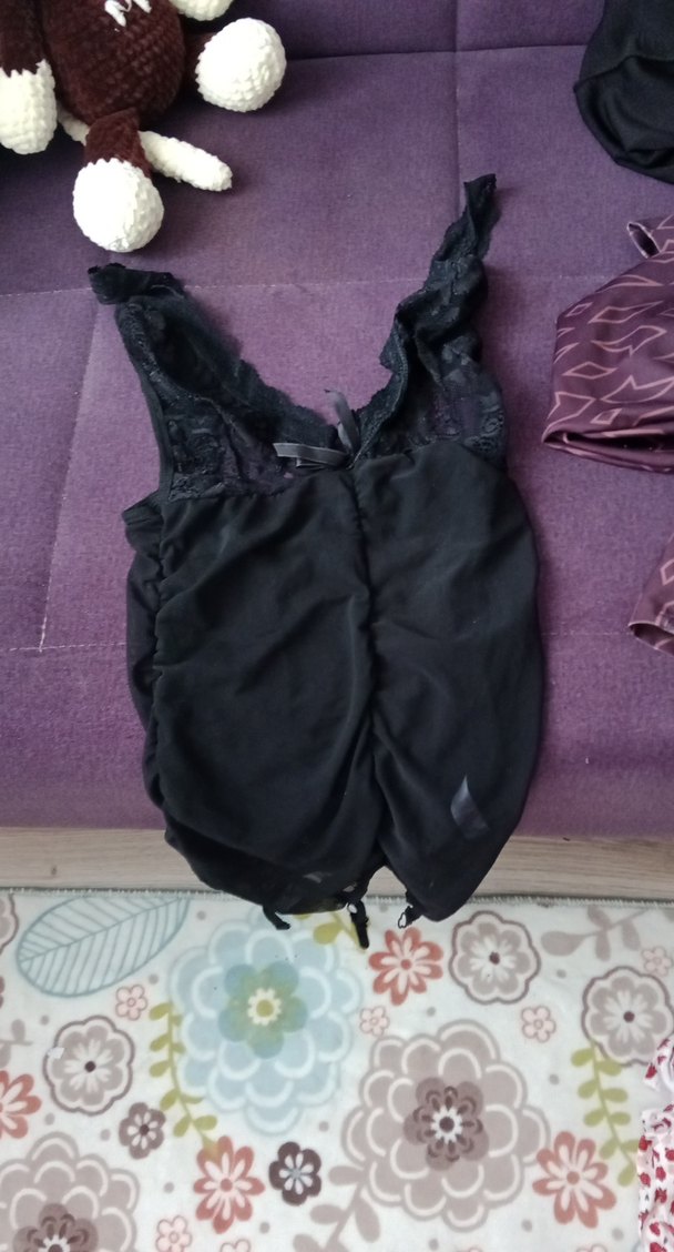 Dantel detaylı, siyah, vücuda oturan, i. Desensiz ve şık görünümlü. gecelik hiç giymedim coraplarini kullandım sadece çorabı yok