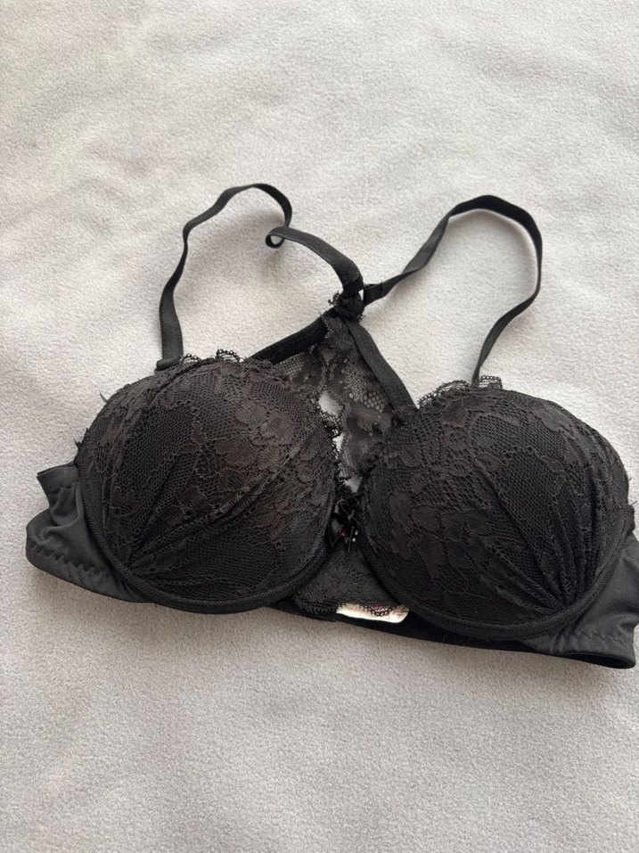 Ayarlanabilir askılı, dantel detaylı siyah goth sütyen, koyu ve şık bir görünüm sunar.