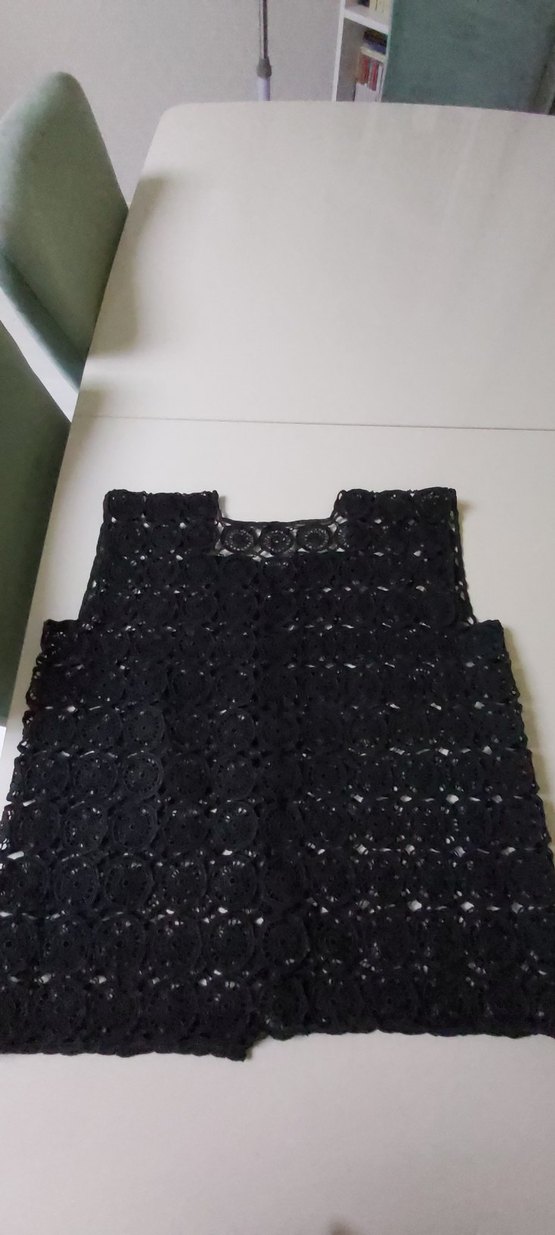 Siyah, dantel detaylı, kayık yaka ve kolsuz triko yelek. Normal kesim ve midi boy ile gotik tarz sunar.Vintage yelek
