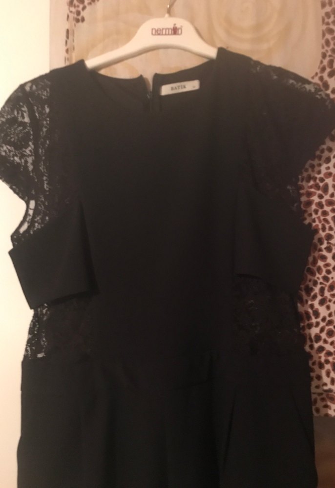 Siyah Dantel Detaylı Kısa Kollu Mini Elbise