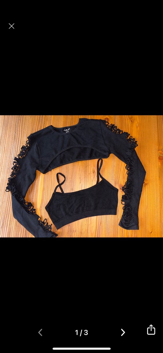 Siyah Dantel Detaylı Kısa Uzun Kollu Bluz takım urban outfitters