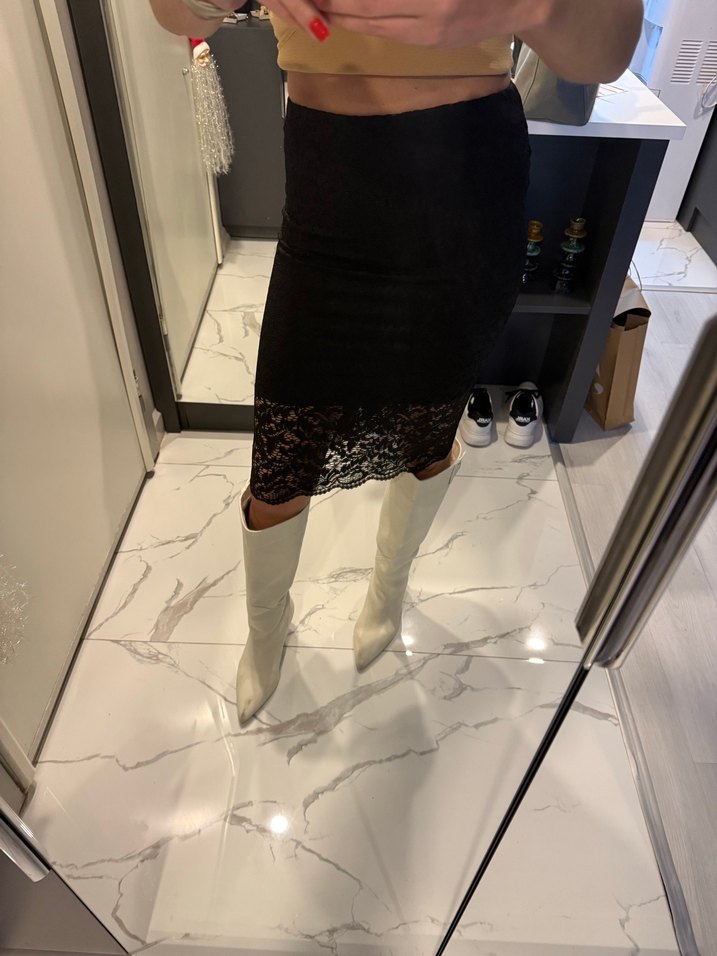 Bershla marka tam kalıp 36 beden astarlı dantelli kalem etek