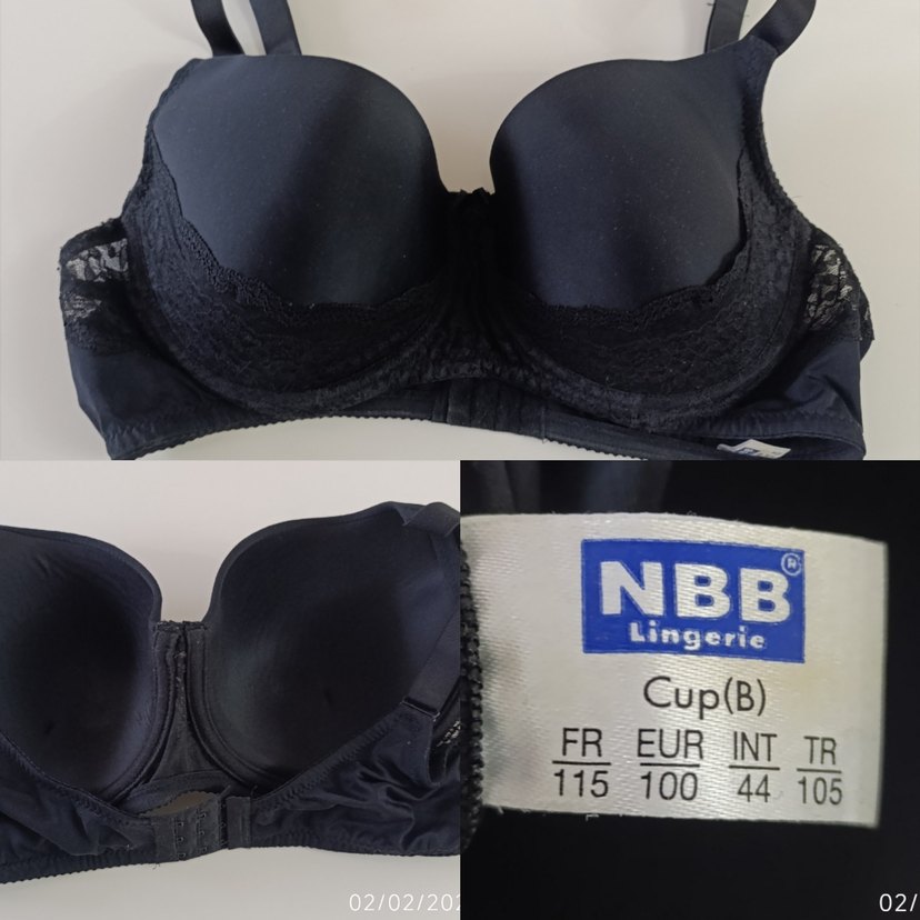Siyah renkli, dantel detaylı normal uzunlukta bir sütyen. B cup ölçüsünde, NBB Lingerie markasına ait midi modeldir. 100 beden