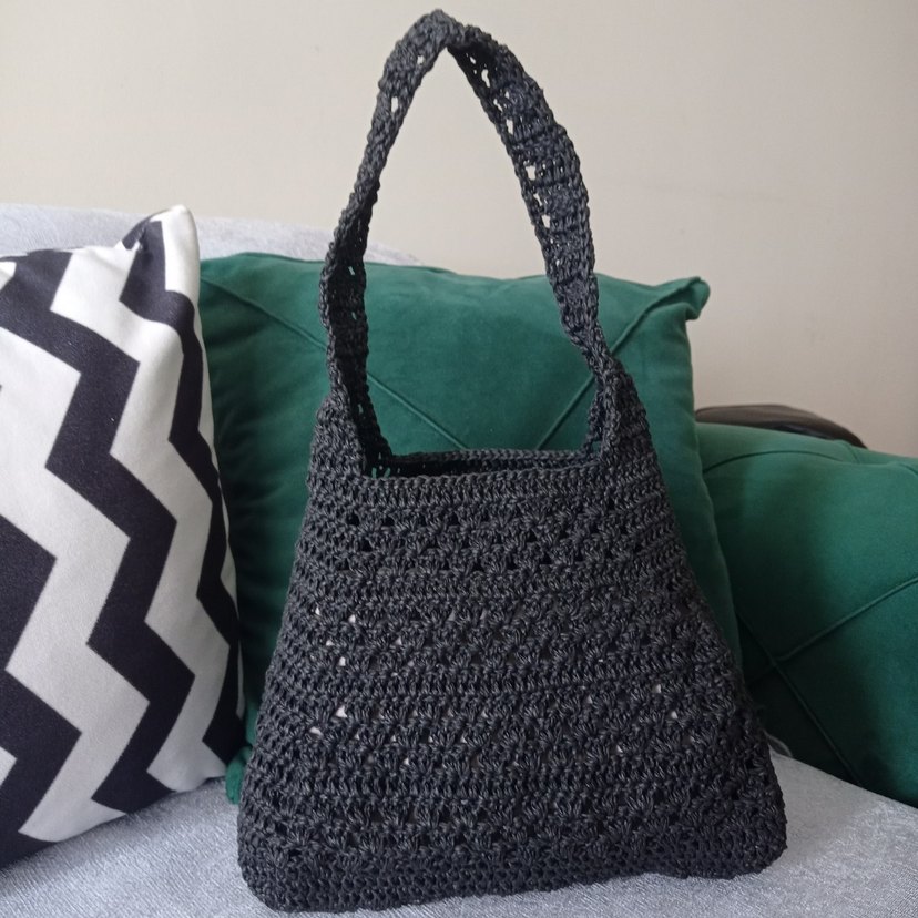Siyah Dantel Detaylı Örgü Kadın Çanta Kağıt ip