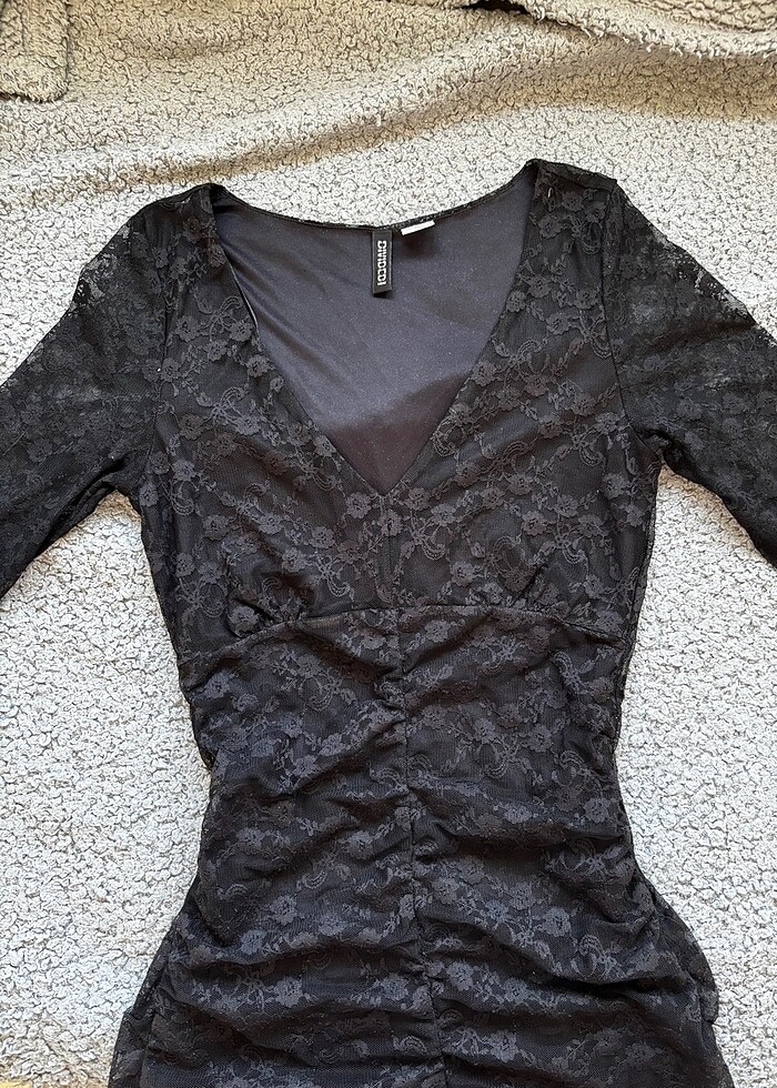 Siyah dantel detaylı şık elbise