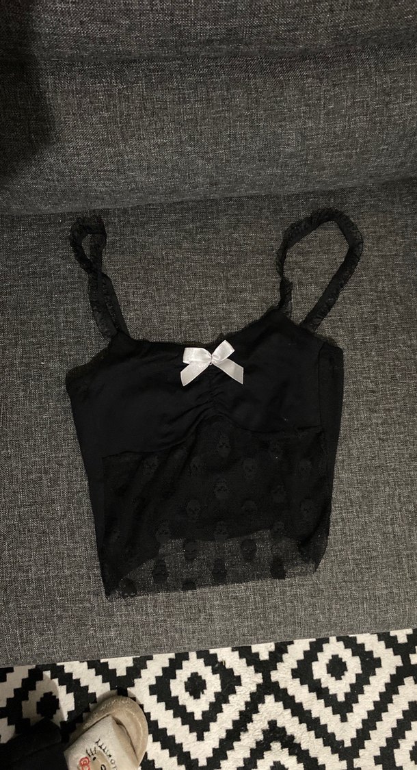 Siyah, dantel detaylı, nakışlı ve strappy askılı, vücuda oturan gotik tarzda bir büstiyer. ✨ s m bedene de olur