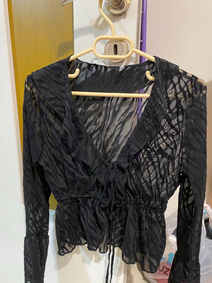 Siyah Dantel Detaylı transparan Gotik V Yaka Bluz