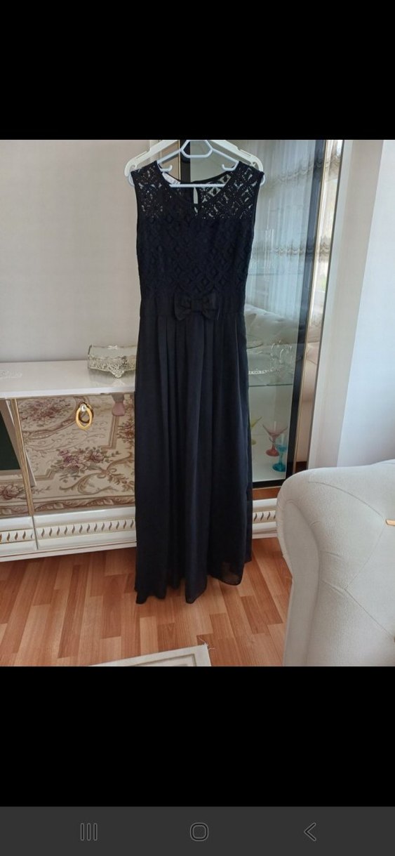 Siyah Dantel Detaylı Uzun Abiye Elbise