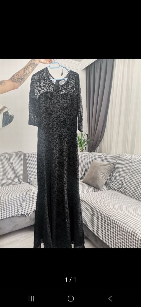 Siyah Dantel Detaylı Uzun Gotik Abiye Elbise