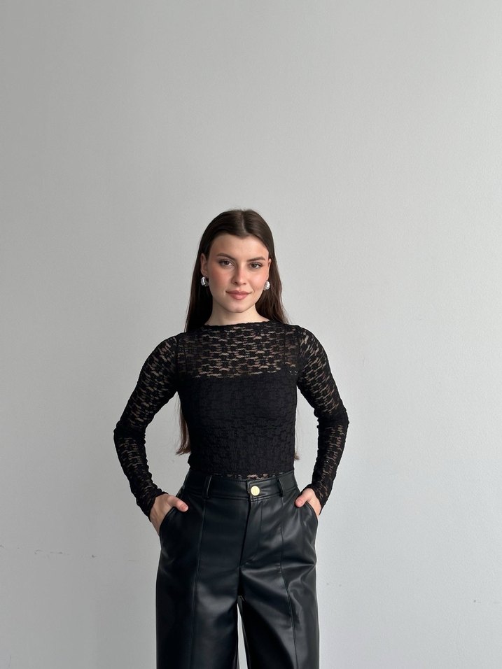 Siyah Dantel Detaylı Uzun Kol Bluz