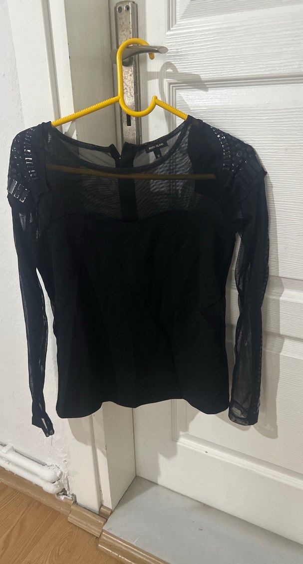 Siyah dantel detaylı, uzun kollu ve dar kesim gotik bluz. Yuvarlak yaka ve normal boyda, yumuşak sentetik kumaştan üretilmiştir. İki koltuk arası 42 cm Koltuktan eteğe boy 36 cm Omuzdan eteğe komple boy 52 cm