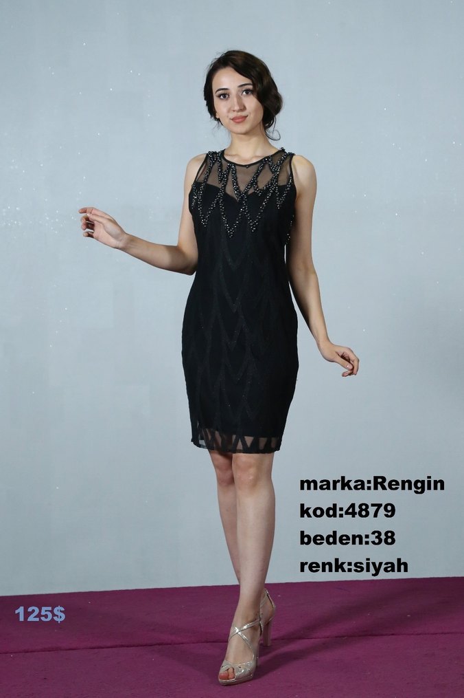 Marka: Rengin Kod: 4879 Beden: 38 Renk: Siyah Fiyat: 1100 TL Açıklama: Zarif ve modern tasarımıyla şıklığı ön plana çıkaran bu elbise, siyahın asaletiyle özel davetlerde sizi öne çıkarır. Transparan üst detayları ve inci işlemeli şık yakasıyla göz alıcı bir duruş sunar. Vücudu nazikçe saran kesimi sayesinde hem konforlu hem de feminen bir siluet oluşturur. Kısa boy tasarımı; nişan, mezuniyet, kokteyl ve davetler için ideal seçimdir. Elegan ve zamansız bir şıklık arayanlar için .