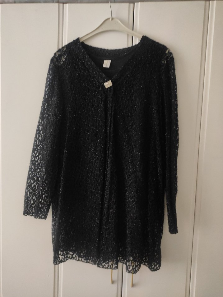 Siyah güpur dantel Detaylı V Yaka Uzun Kollu Bluz