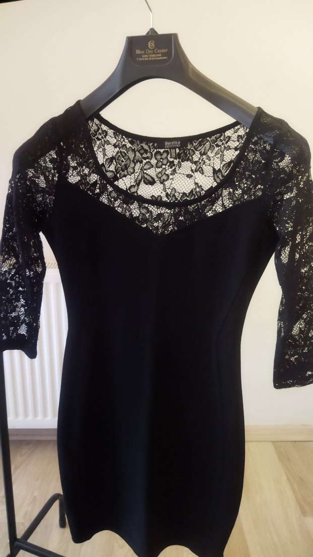 Uzun dantel kollu, V yakalı siyah oturan mini elbise. Gotik detaylarıyla klasik ve şık bir görünüm sunar. Romantik geceler için uygundur. Likralı. 36 38 bazen 40 bedene uygun