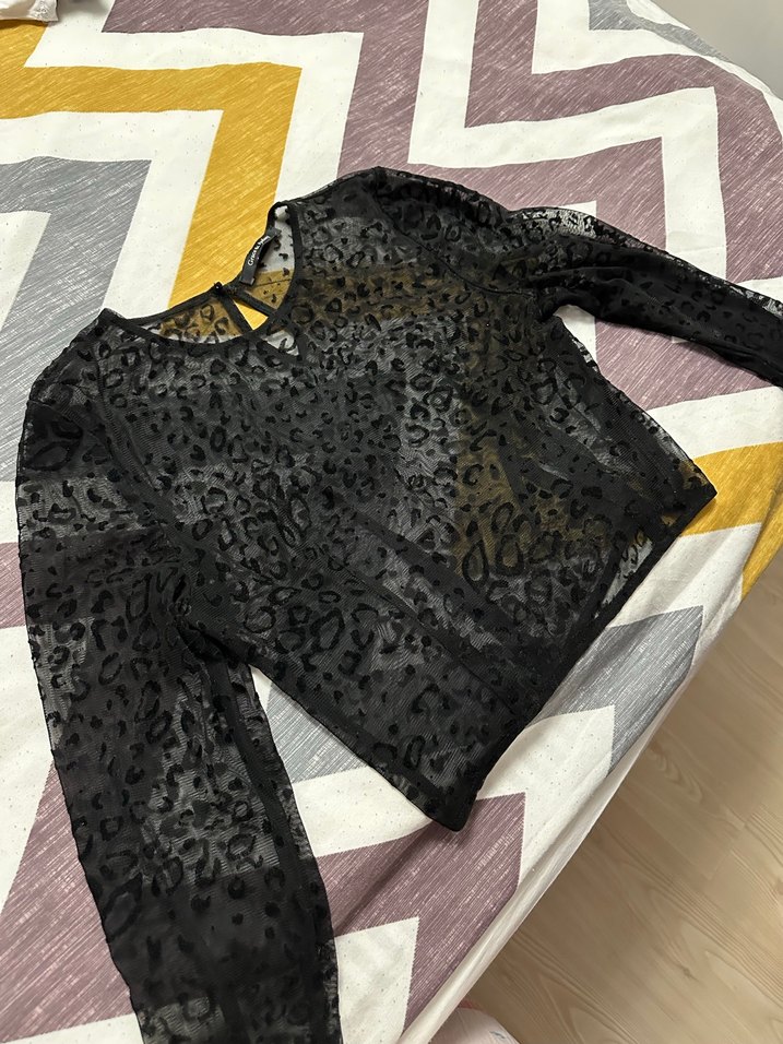 Siyah Dantel Detaylı Yılan Desenli Uzun Kollu Bluz