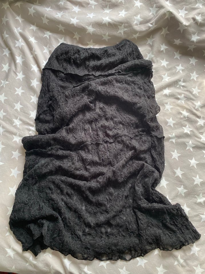 Siyah dantel uzun etek, dökümlü tasarımı ve bol kesimiyle avangart tarzı yansıtır. Günlük kullanım için rahat ve şık bir seçenek.