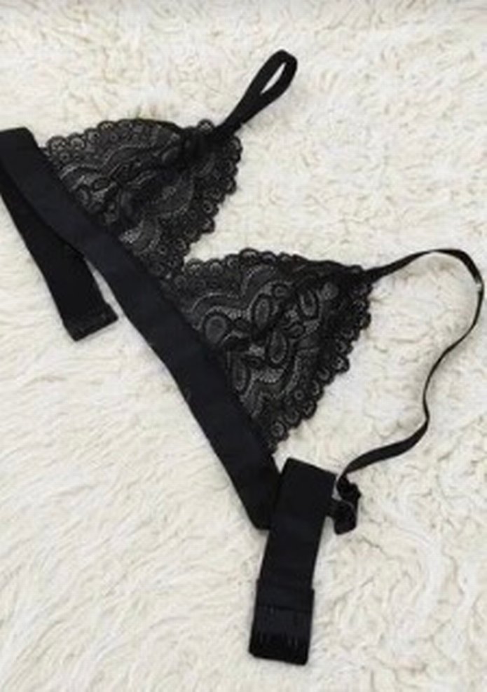 Ayarlanabilir askılı, rahat kesim siyah dantel bralet. Goth tarzını yansıtan şık ve koyu renkli tasarım.