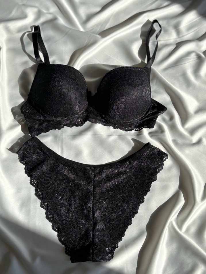 Siyah dantel detaylı goth sütyen ve külot takımı, normal boyda ve ayarlanabilir askılıdır. Koyu ve şık bir görünüme sahiptir. Desteklidir 75 80 85 90 her beden vardır aldığınız da beden belirtebilirsiniz