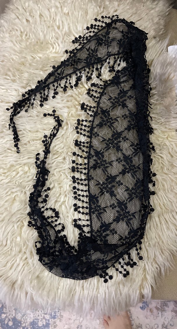 Yumuşak sentetik kumaştan yapılmış, boncuk detaylı siyah dantel fular. Gotik tarzda, bohem ve retro görünümler için uygundur.