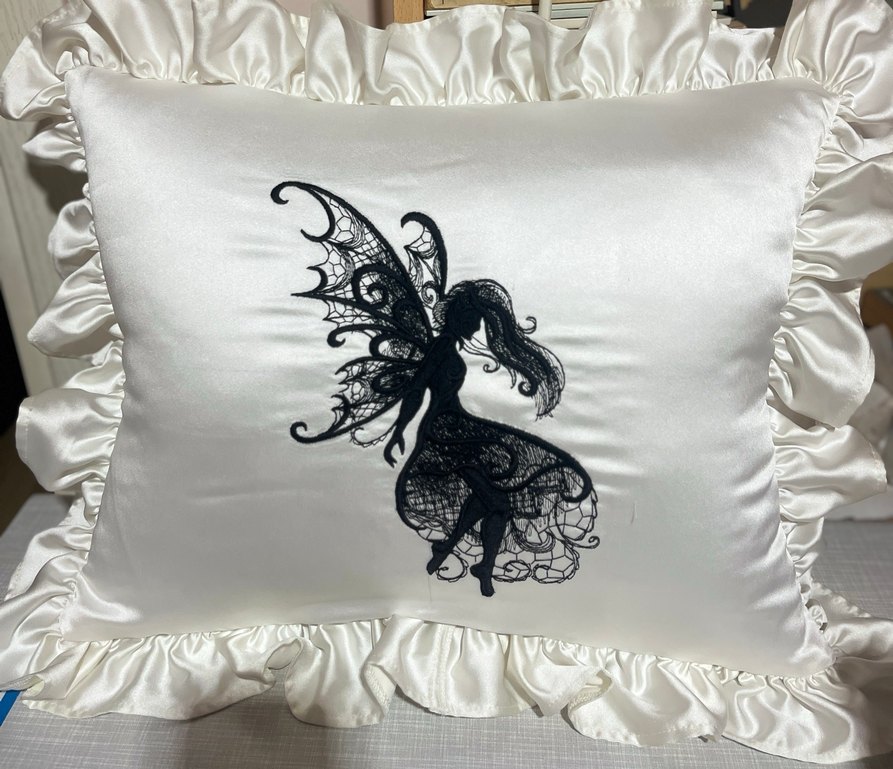 Bu siyah gotik peri nakışlı yastık kılıfı.saten kumaştır